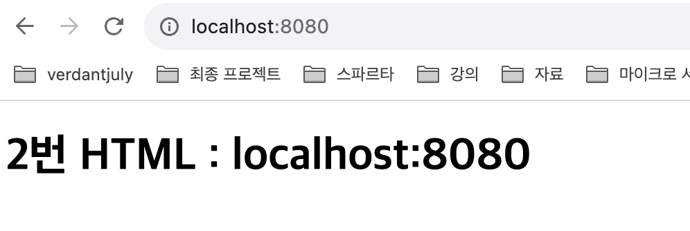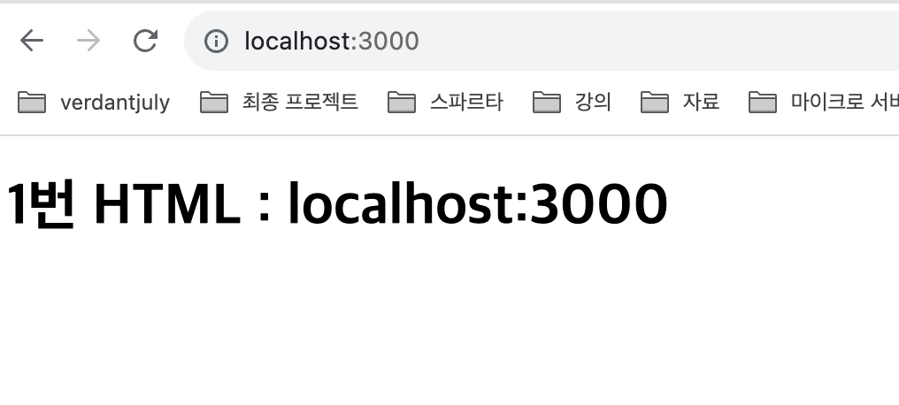 4. 이때, 안에 들어가는 index.html에 구분할 수 있는 문자를 넣어 준다. ex) 1번 HTML, 2번 HTML